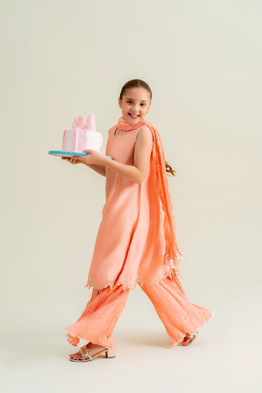 (Kids) 3 Piece - Embroidered Cotton Net Suit BRK-04