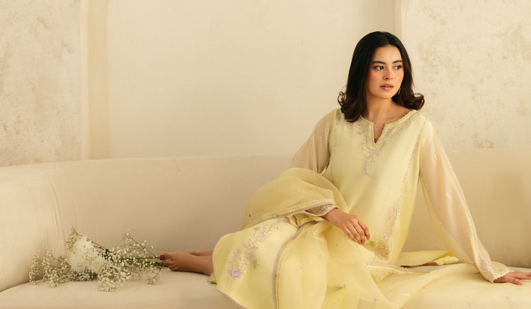 3 Piece - Pure Chiffon Embroidered Suit S112689