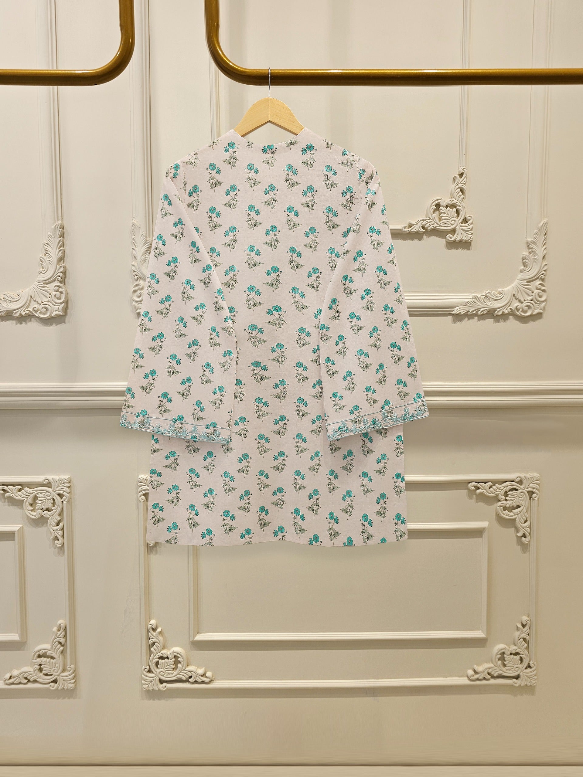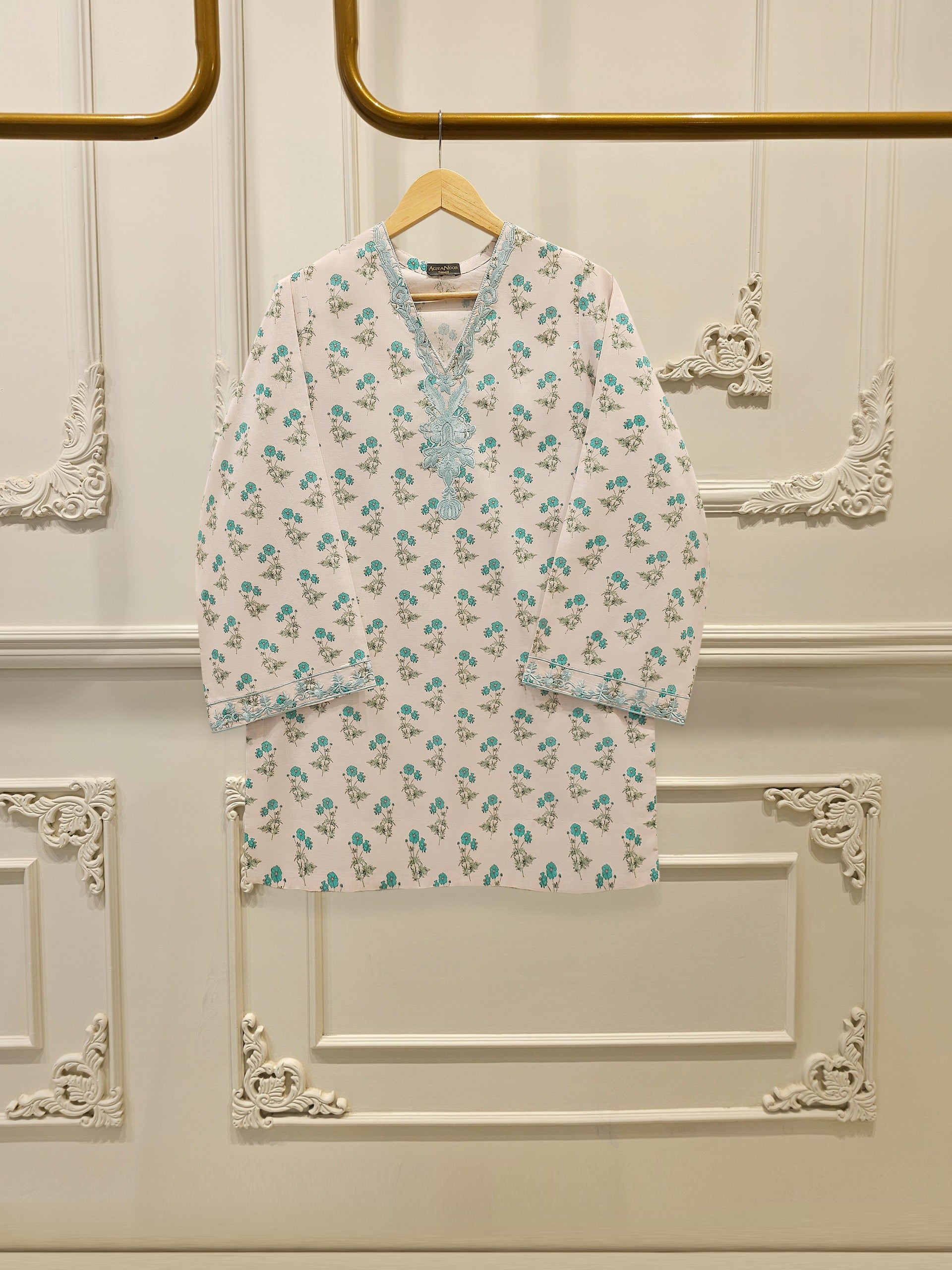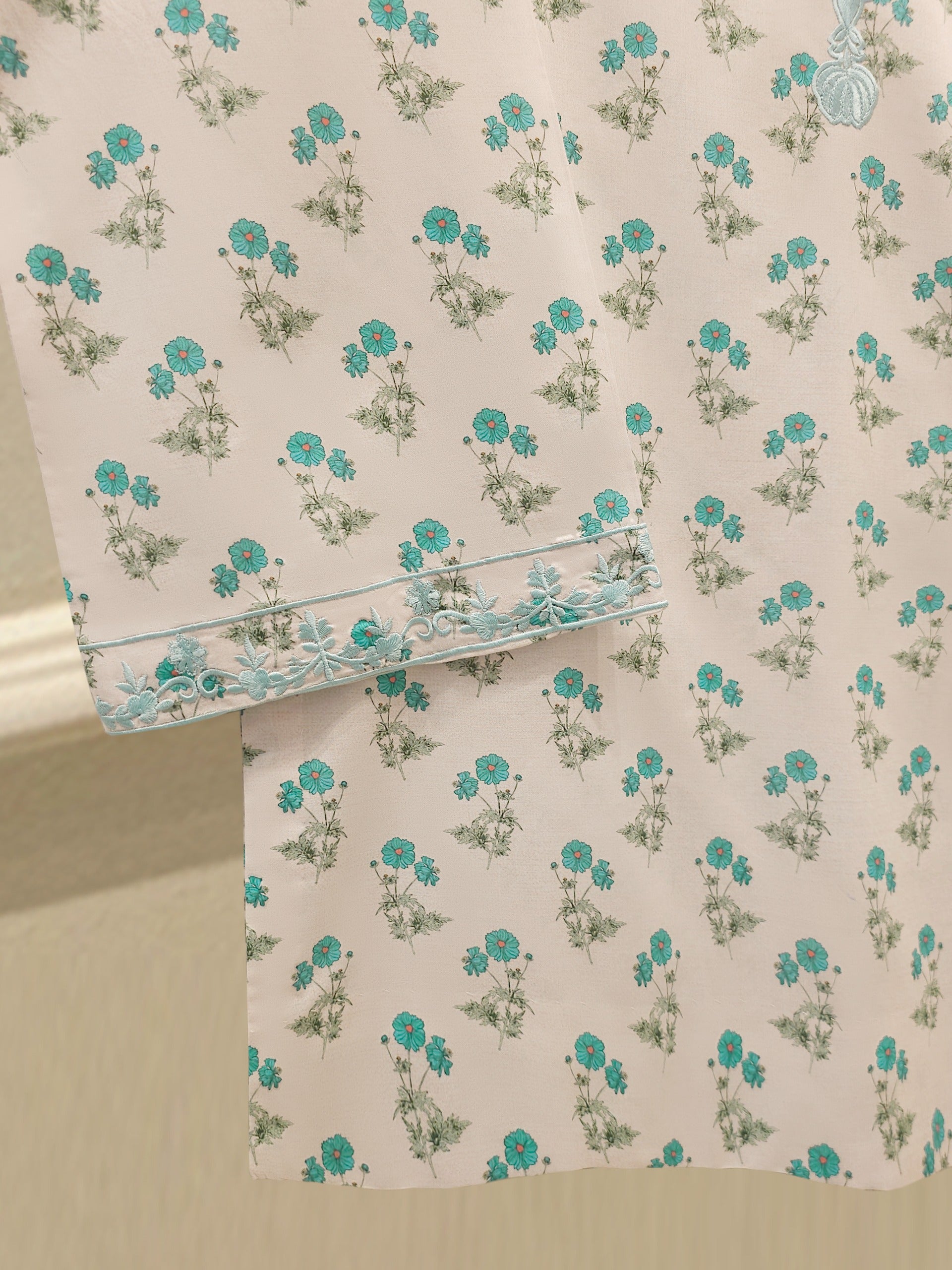 Elevate your summer wardrobe with this beautifully crafted beige lawn shirt, featuring intricate Chikan Kari work on the sleeves and daman. Designed for timeless elegance, this piece blends breathable lawn fabric with traditional craftsmanship, perfect for festive occasions or casual sophistication. Pair it with pants for a complete look.