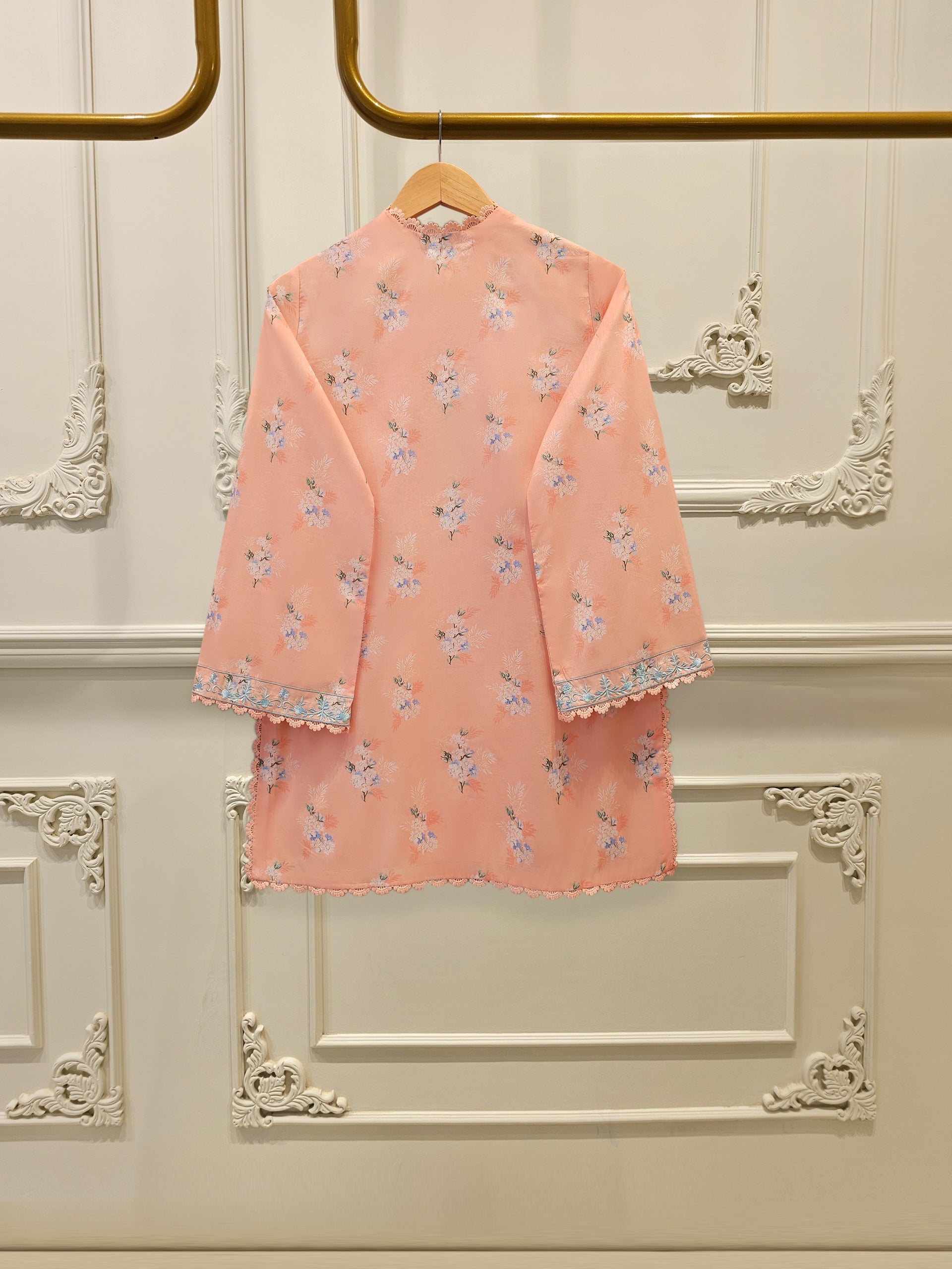 Elevate your summer wardrobe with this beautifully crafted peach lawn shirt, featuring intricate Chikan Kari work on the sleeves and daman. Designed for timeless elegance, this piece blends breathable lawn fabric with traditional craftsmanship, perfect for festive occasions or casual sophistication. Pair it with pants for a complete look.