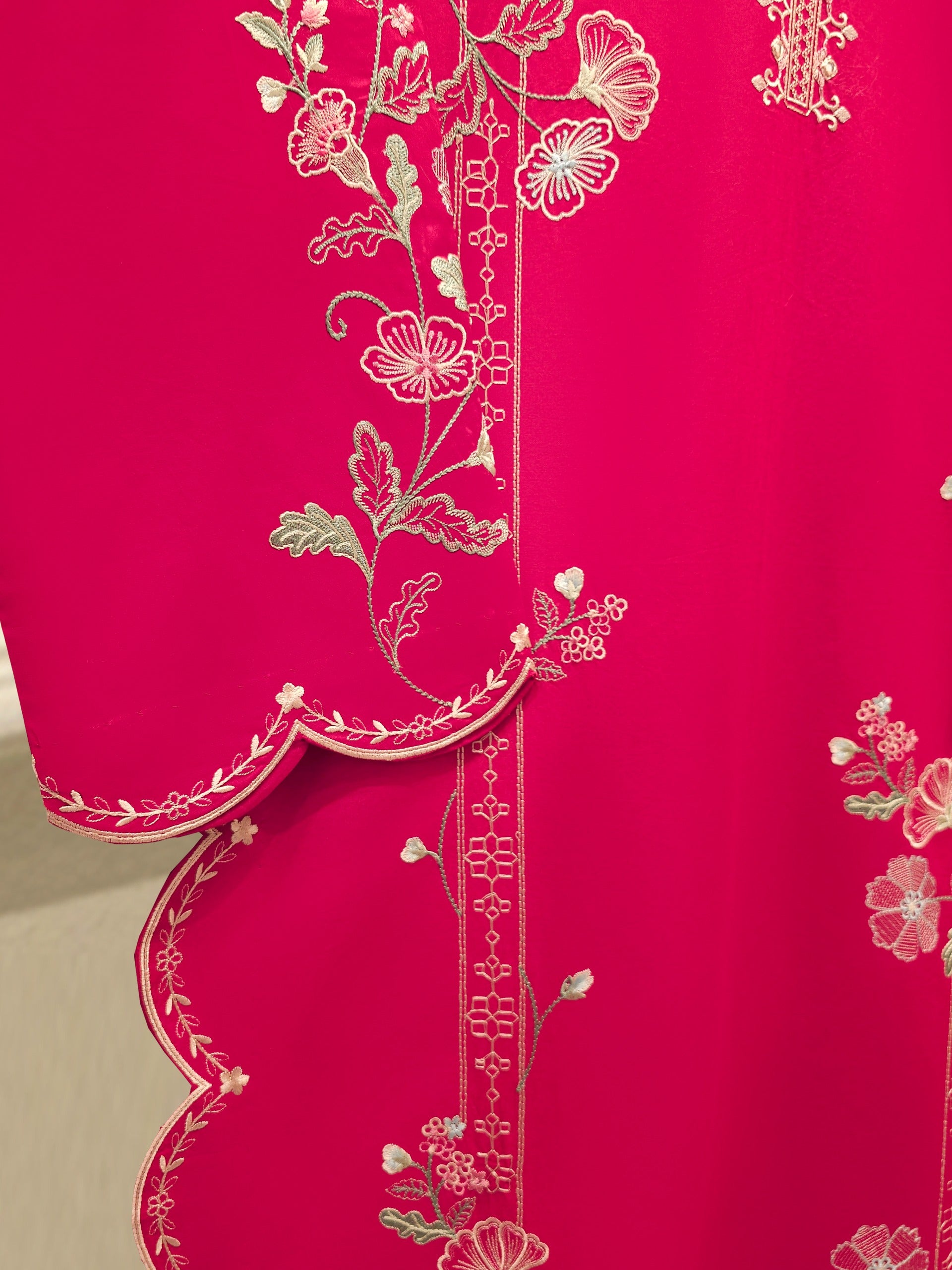 Elevate your summer wardrobe with this beautifully crafted red cambric shirt, featuring intricate Chikan Kari work on the sleeves and daman. Designed for timeless elegance, this piece blends breathable lawn fabric with traditional craftsmanship, perfect for festive occasions or casual sophistication. Pair it with pants for a complete look.