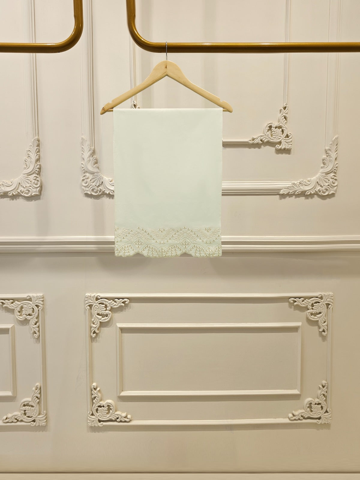 Elevate your summer wardrobe with this beautifully crafted sea green cambric shirt, featuring intricate Chikan Kari work on the sleeves and daman. Designed for timeless elegance, this piece blends breathable lawn fabric with traditional craftsmanship, perfect for festive occasions or casual sophistication. Pair it with pants for a complete look.