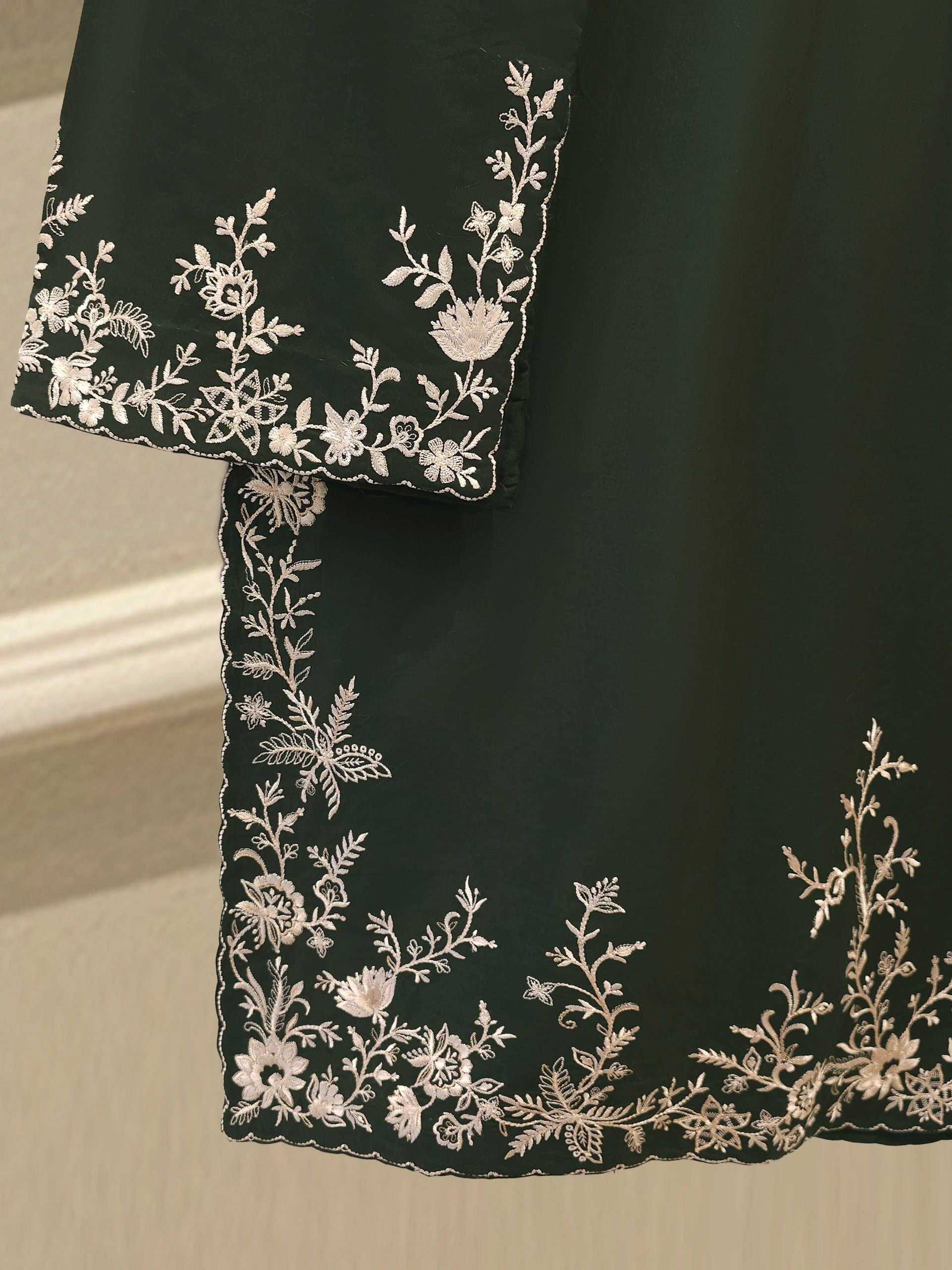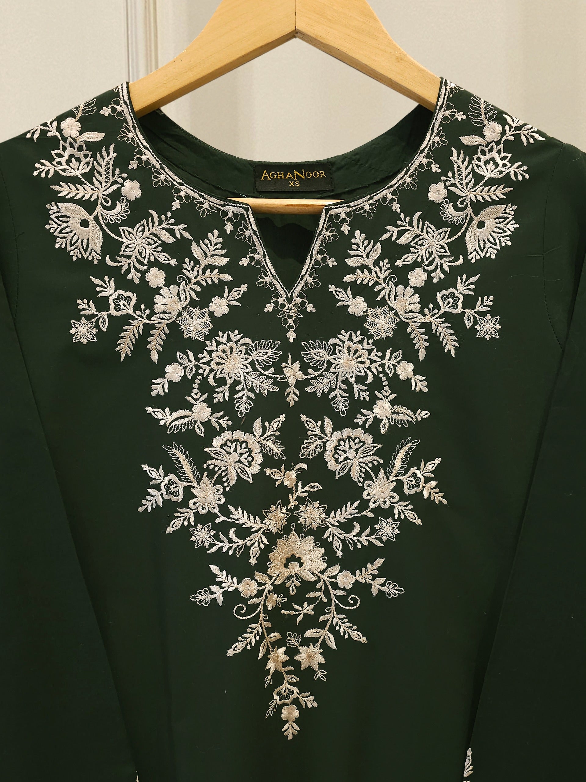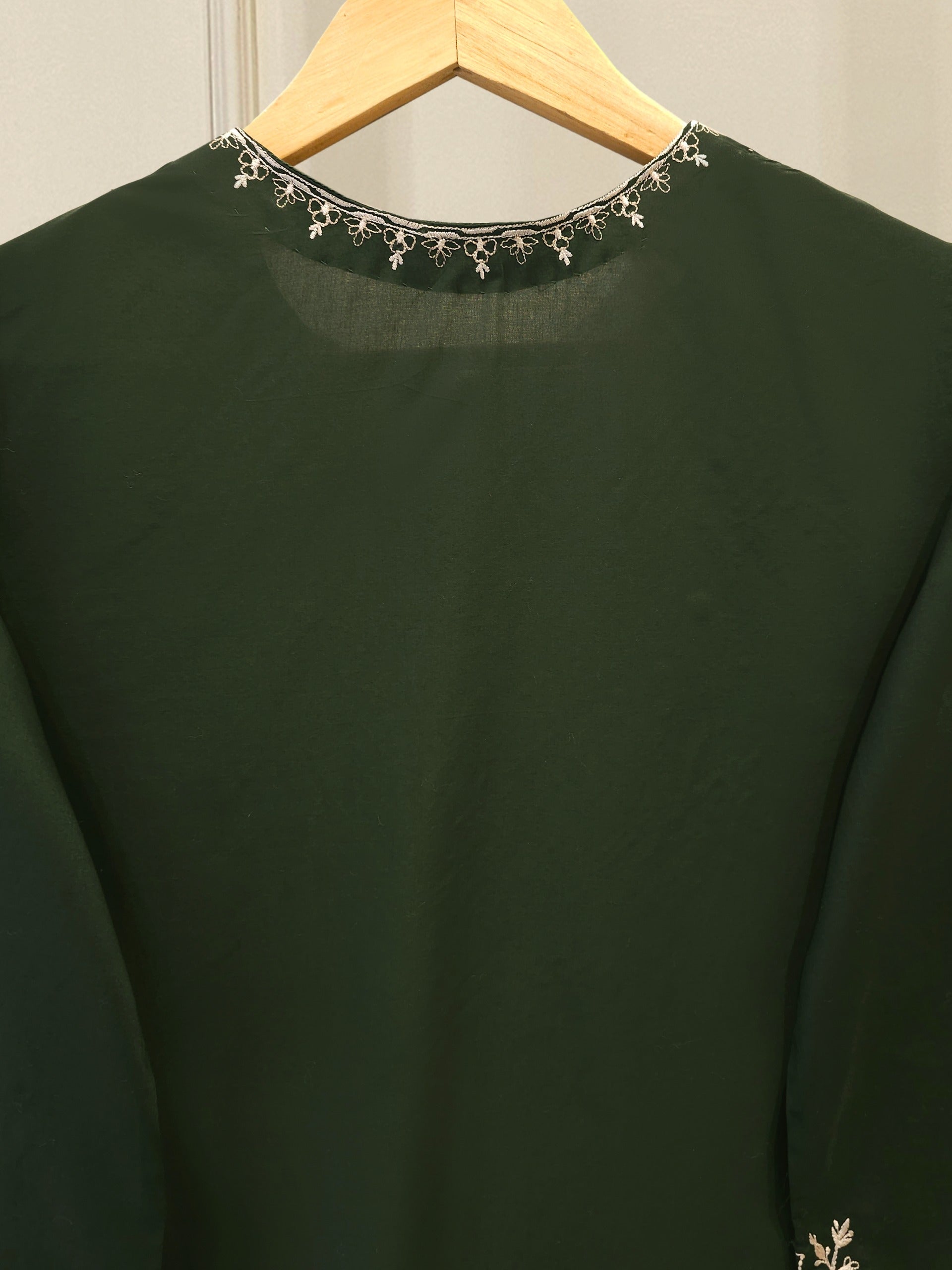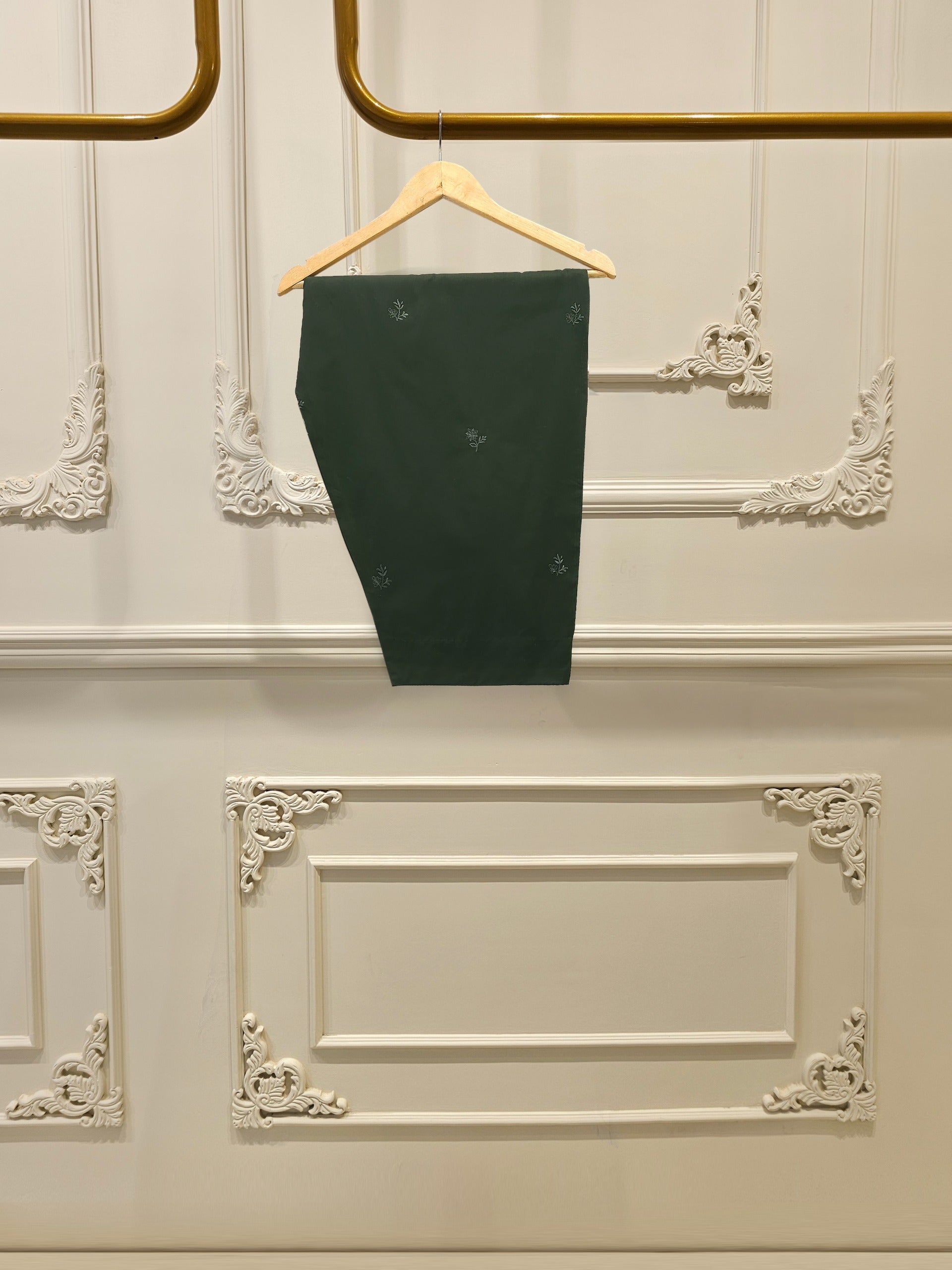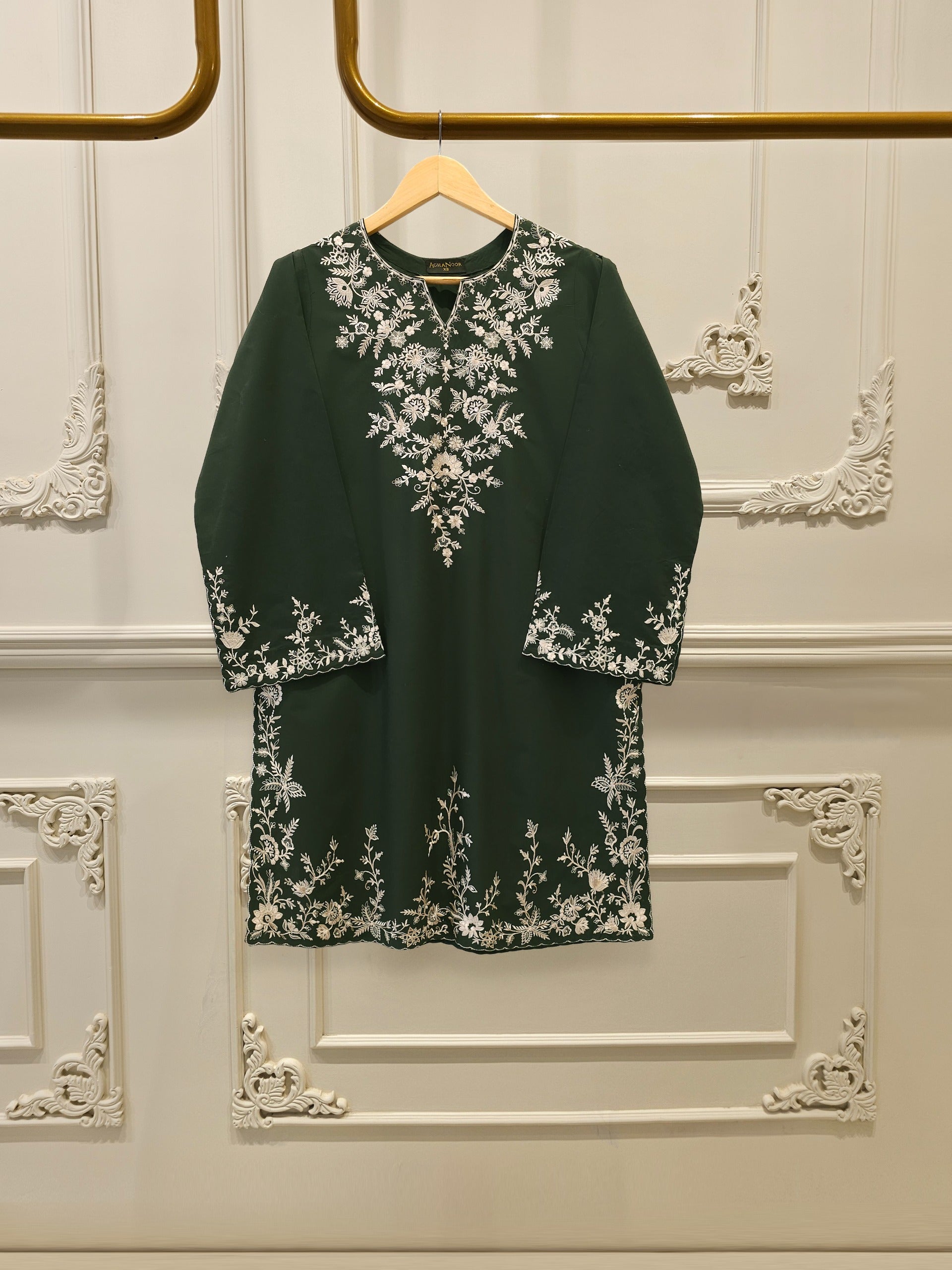 Elevate your summer wardrobe with this beautifully crafted dark green Cambric shirt, featuring intricate Chikan Kari work on the sleeves and daman. Designed for timeless elegance, this piece blends breathable lawn fabric with traditional craftsmanship, perfect for festive occasions or casual sophistication. Pair it with dupatta for a complete look.