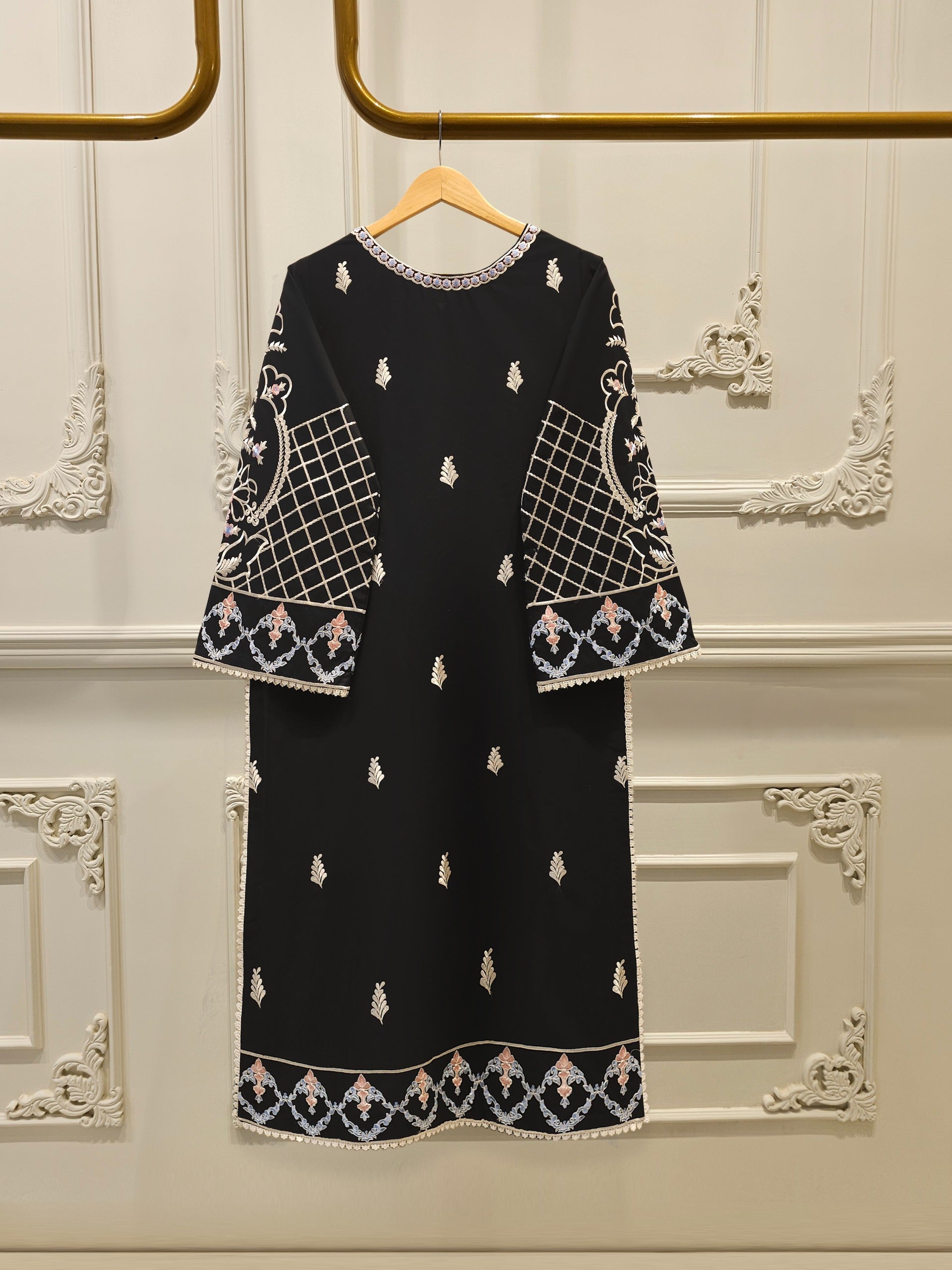Elevate your summer wardrobe with this beautifully crafted black lawn shirt, featuring intricate Chikan Kari work on the sleeves and daman. Designed for timeless elegance, this piece blends breathable lawn fabric with traditional craftsmanship, perfect for festive occasions or casual sophistication. Pair it with pent for a complete look.