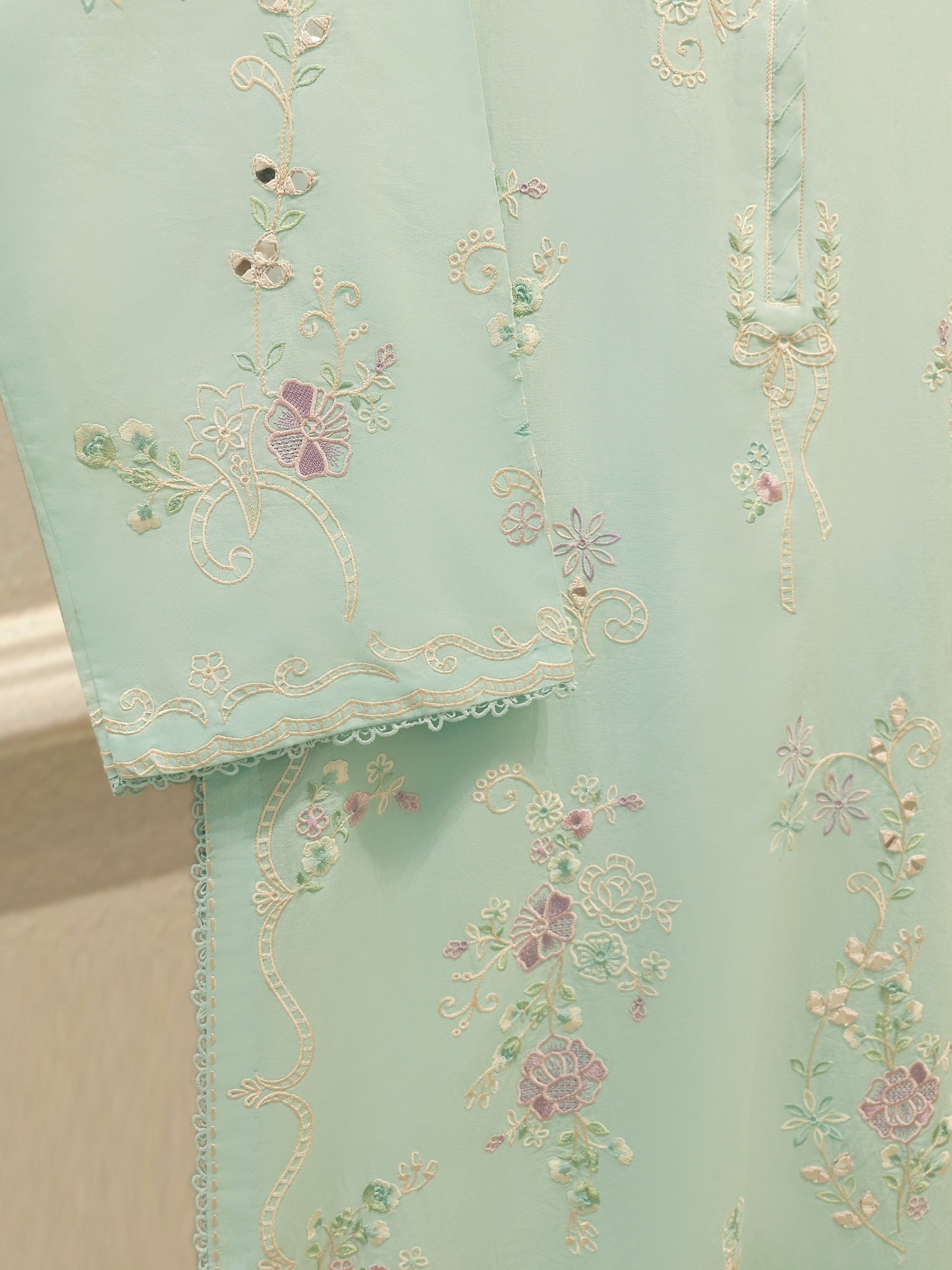 Elevate your summer wardrobe with this beautifully crafted ferozi lawn shirt, featuring intricate Chikan Kari work on the sleeves and daman. Designed for timeless elegance, this piece blends breathable lawn fabric with traditional craftsmanship, perfect for festive occasions or casual sophistication. Pair it with pants for a complete look.