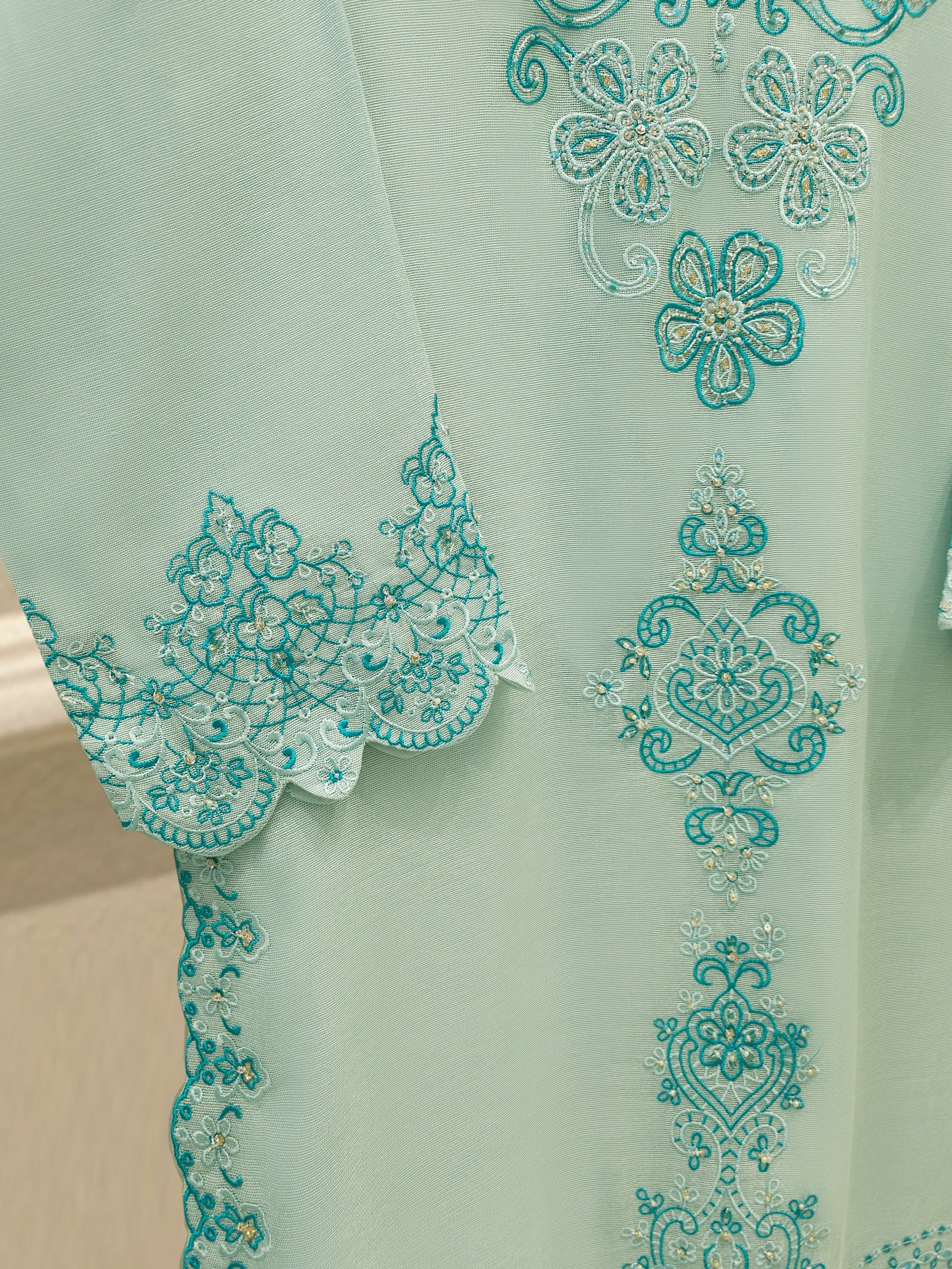 Introducing our elegant embroidered cotton net shirt with pants a perfect choice for those who appreciate intricate detailing and graceful style. Crafted from high-quality cotton net fabric, this shirt offers a lightweight and luxurious feel, allowing you to feel comfortable and chic throughout the day. The set comes with a matching dupatta and pant which enhances the overall look and adds a touch of finesse to your outfit.