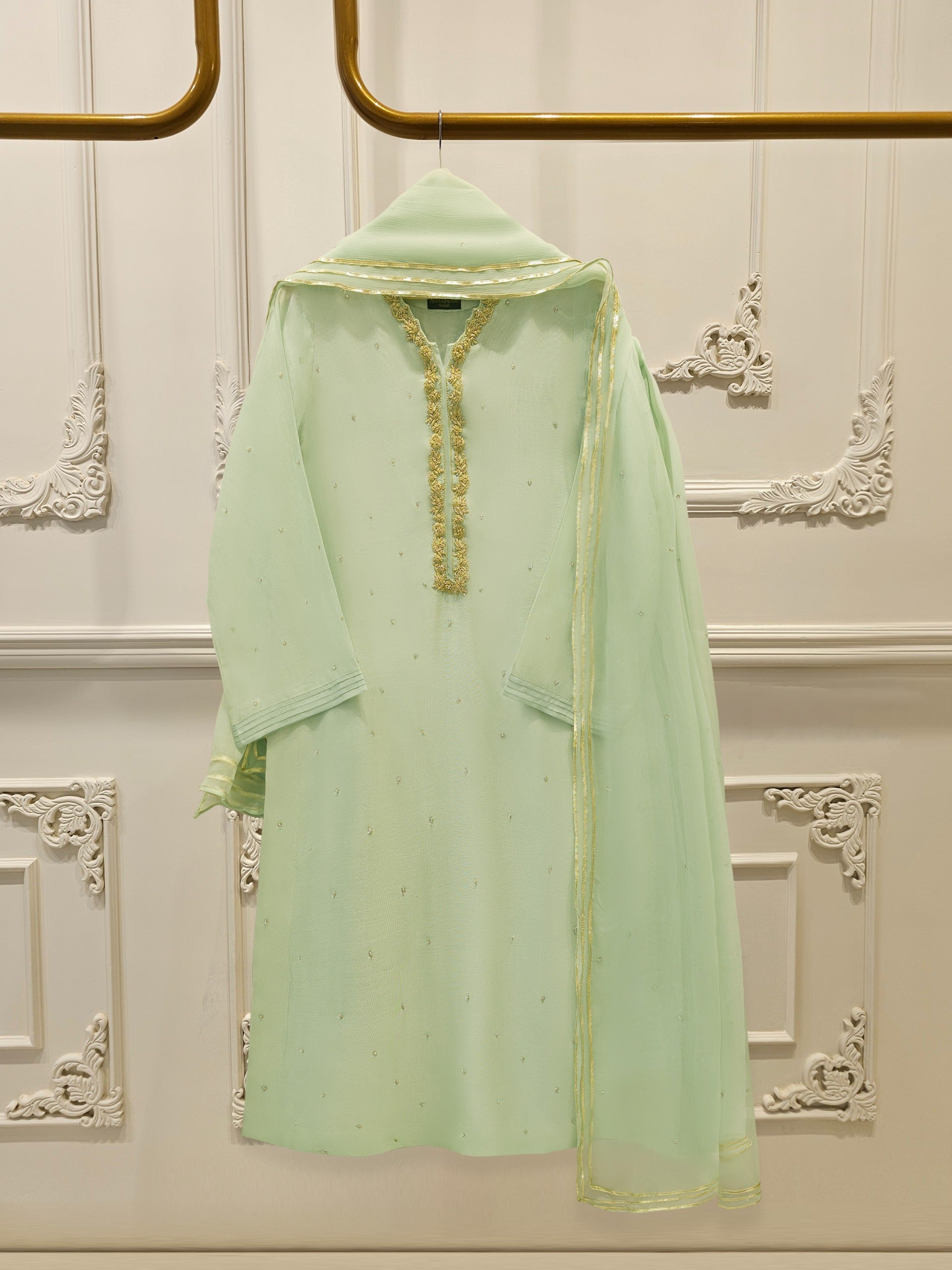 Introducing our elegant embroidered cotton net shirt with pants a perfect choice for those who appreciate intricate detailing and graceful style. Crafted from high-quality cotton net fabric, this shirt offers a lightweight and luxurious feel, allowing you to feel comfortable and chic throughout the day. The set comes with a matching dupatta and pant which enhances the overall look and adds a touch of finesse to your outfit.