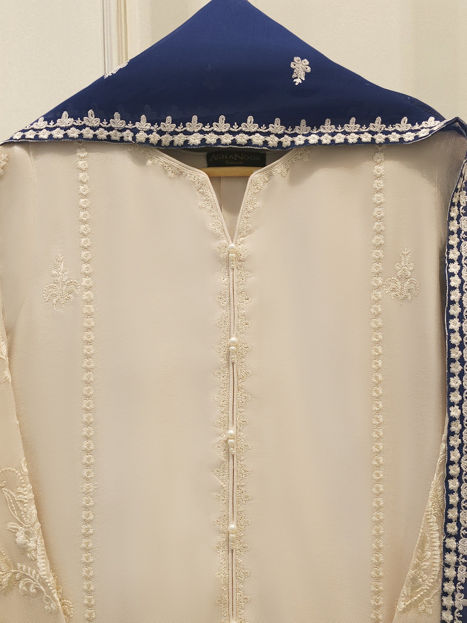 Introducing our elegant embroidered cotton net shirt with pants and dupatta a perfect choice for those who appreciate intricate detailing and graceful style. Crafted from high-quality cotton net fabric, this shirt offers a lightweight and luxurious feel, allowing you to feel comfortable and chic throughout the day. The set comes with a matching dupatta and pant which enhances the overall look and adds a touch of finesse to your outfit.
