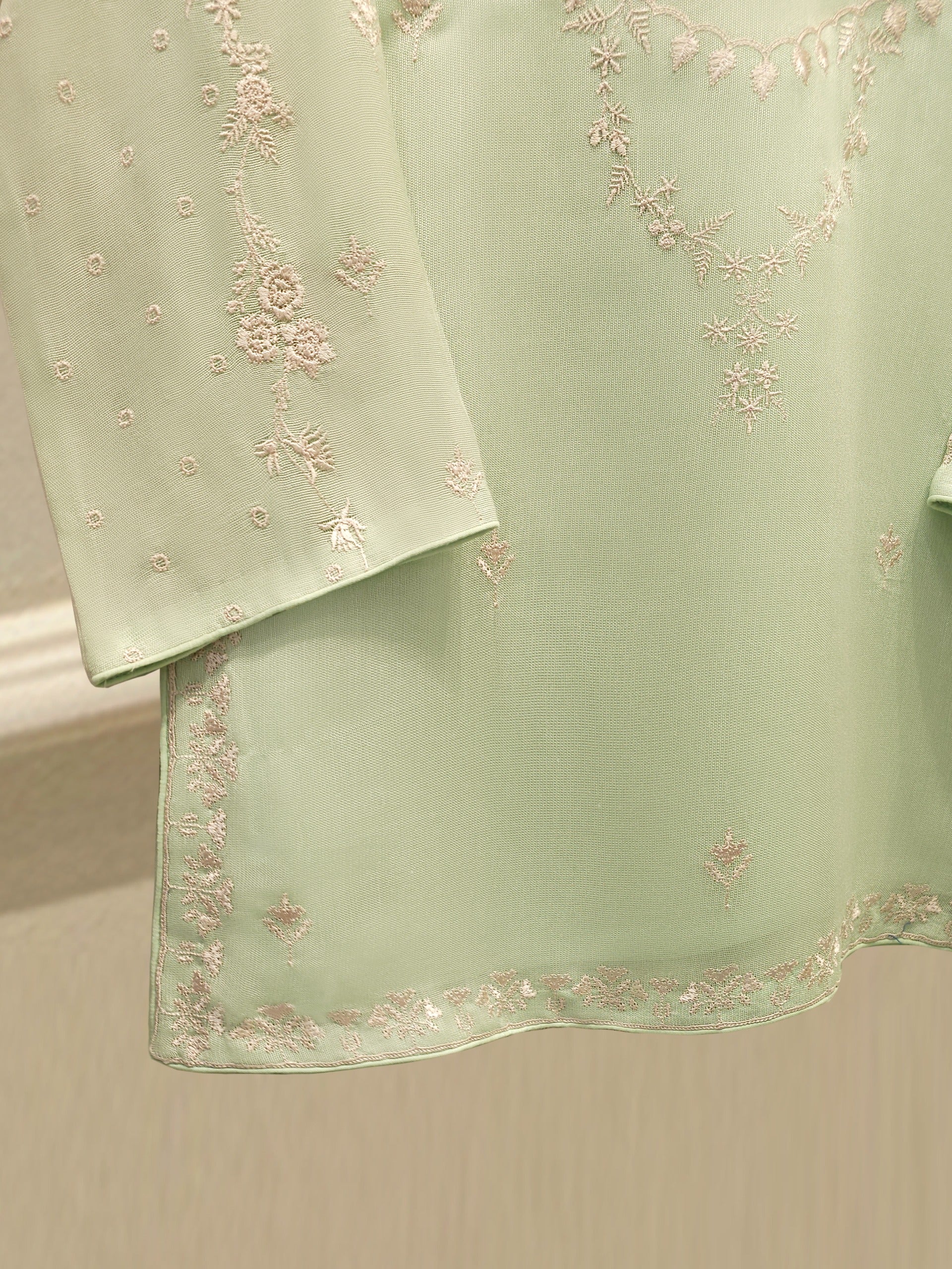 Introducing our elegant embroidered cotton net shirt with pants a perfect choice for those who appreciate intricate detailing and graceful style. Crafted from high-quality cotton net fabric, this shirt offers a lightweight and luxurious feel, allowing you to feel comfortable and chic throughout the day. The set comes with a matching dupatta and pant which enhances the overall look and adds a touch of finesse to your outfit.