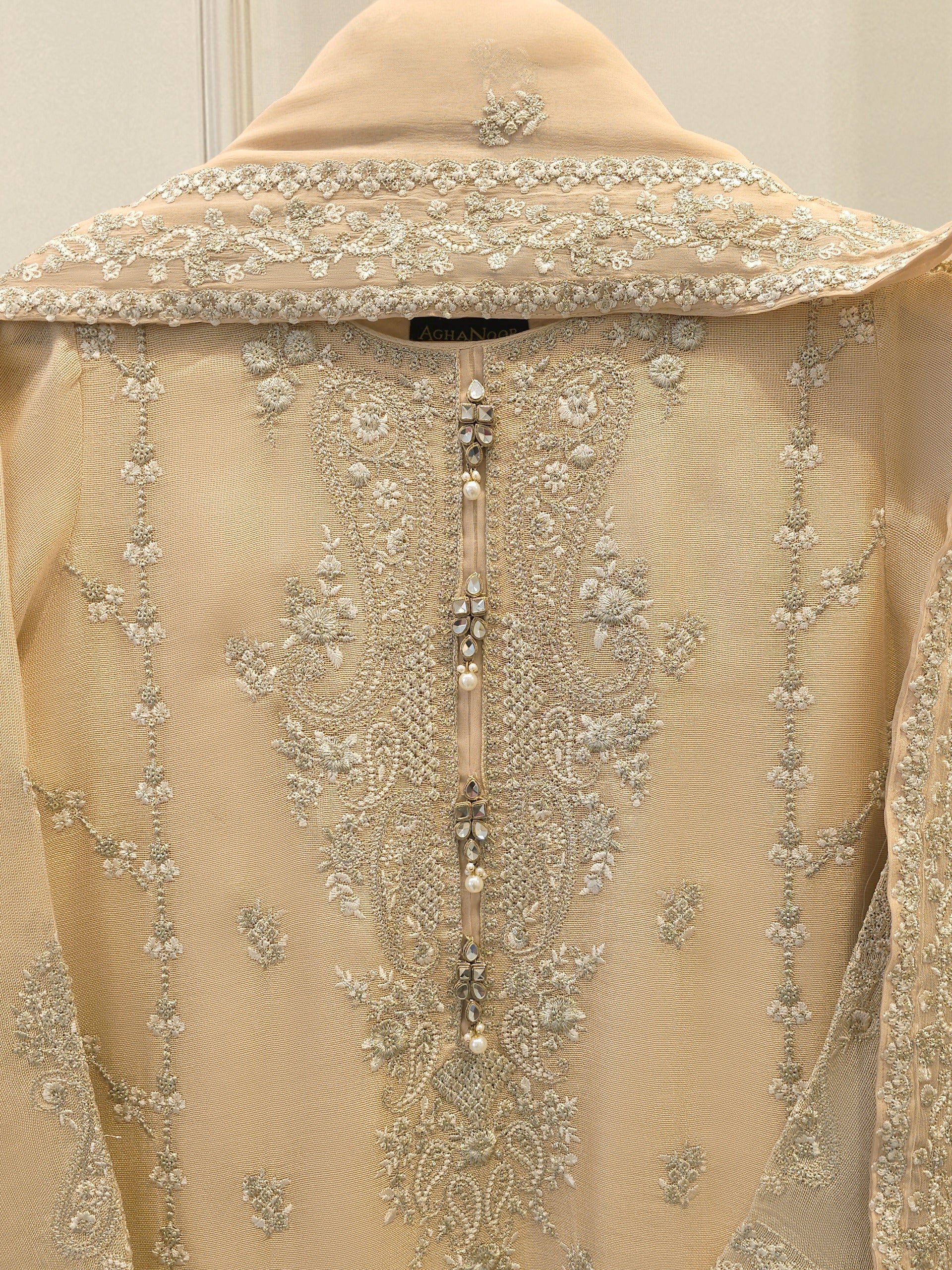 Introducing our elegant embroidered cotton net shirt with pants a perfect choice for those who appreciate intricate detailing and graceful style. Crafted from high-quality cotton net fabric, this shirt offers a lightweight and luxurious feel, allowing you to feel comfortable and chic throughout the day. The set comes with a matching dupatta and pant which enhances the overall look and adds a touch of finesse to your outfit.