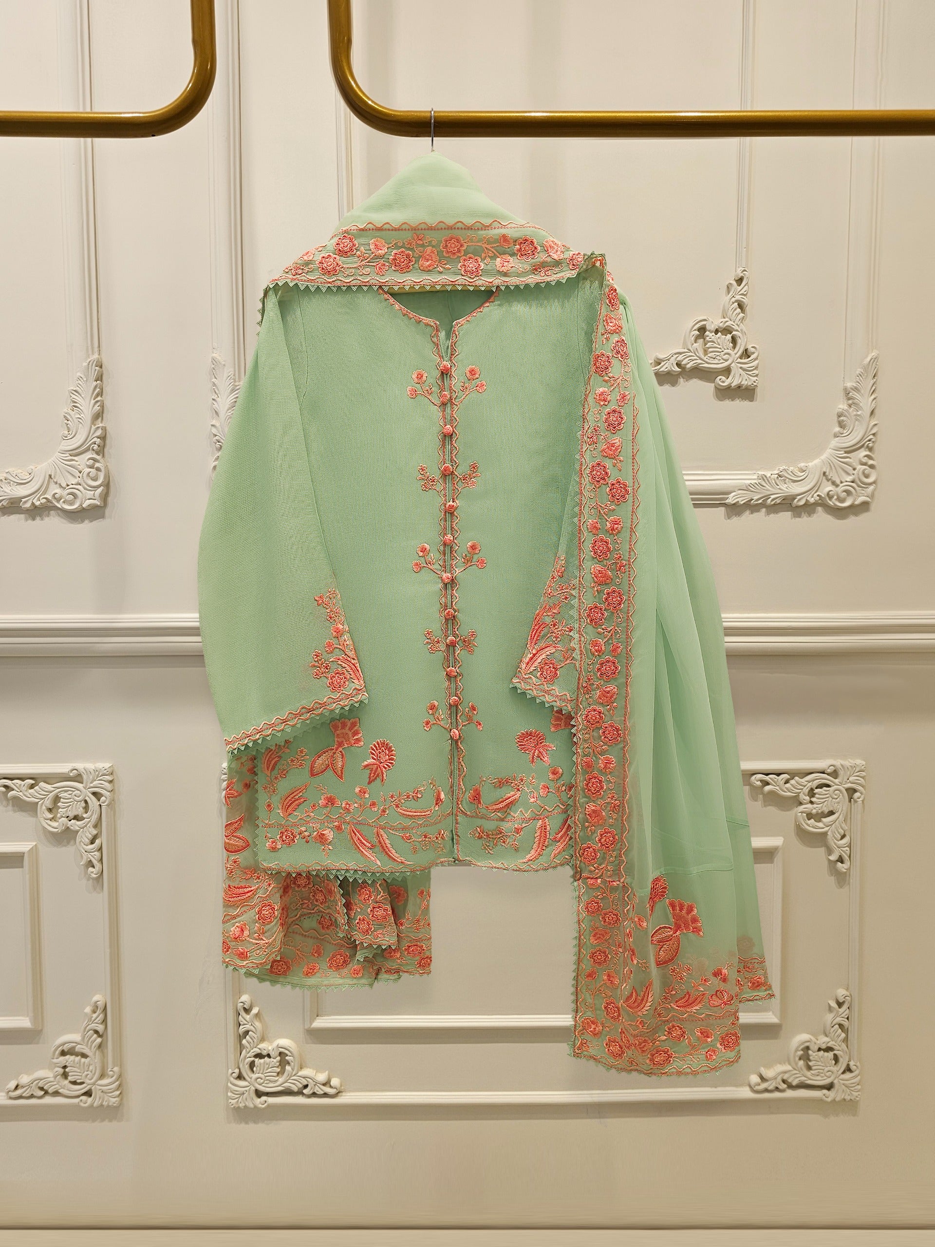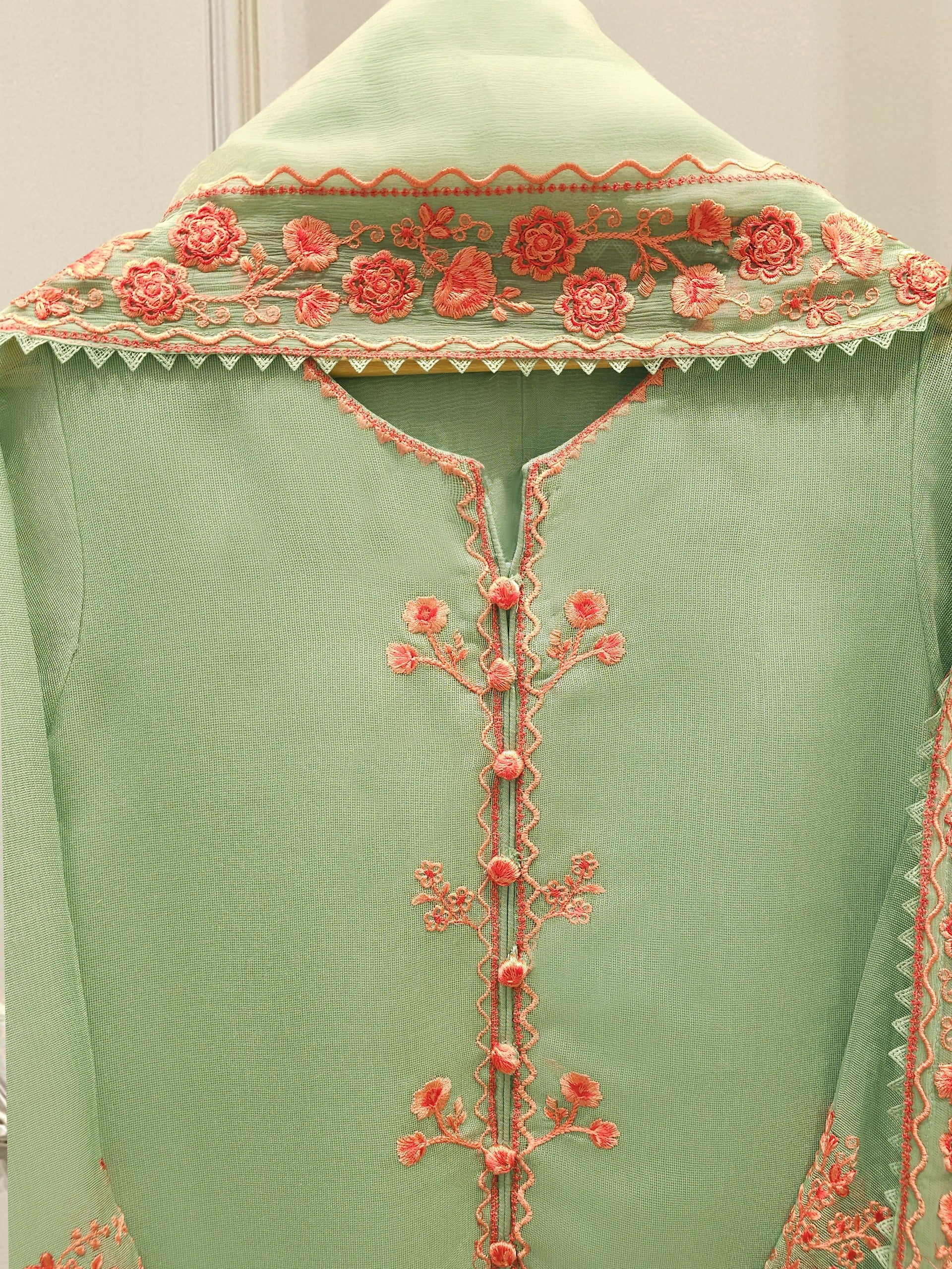 Introducing our elegant embroidered cotton net shirt with pants a perfect choice for those who appreciate intricate detailing and graceful style. Crafted from high-quality cotton net fabric, this shirt offers a lightweight and luxurious feel, allowing you to feel comfortable and chic throughout the day. The set comes with a matching pant which enhances the overall look and adds a touch of finesse to your outfit.