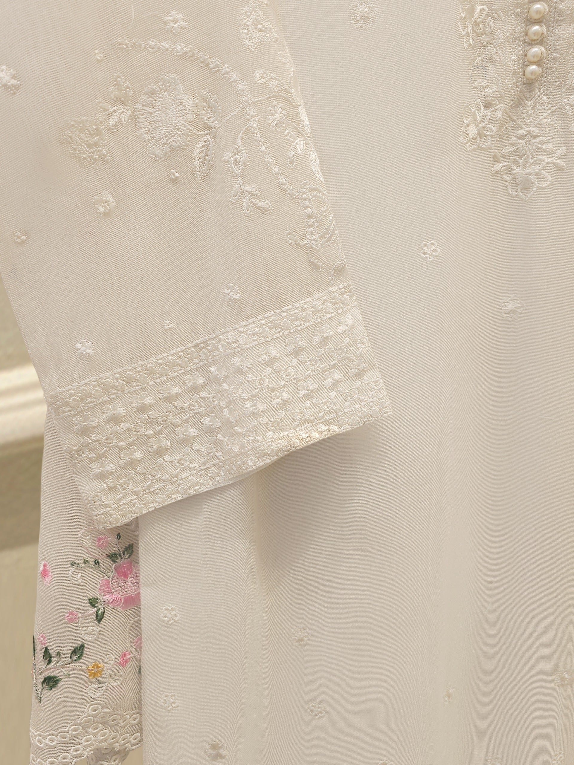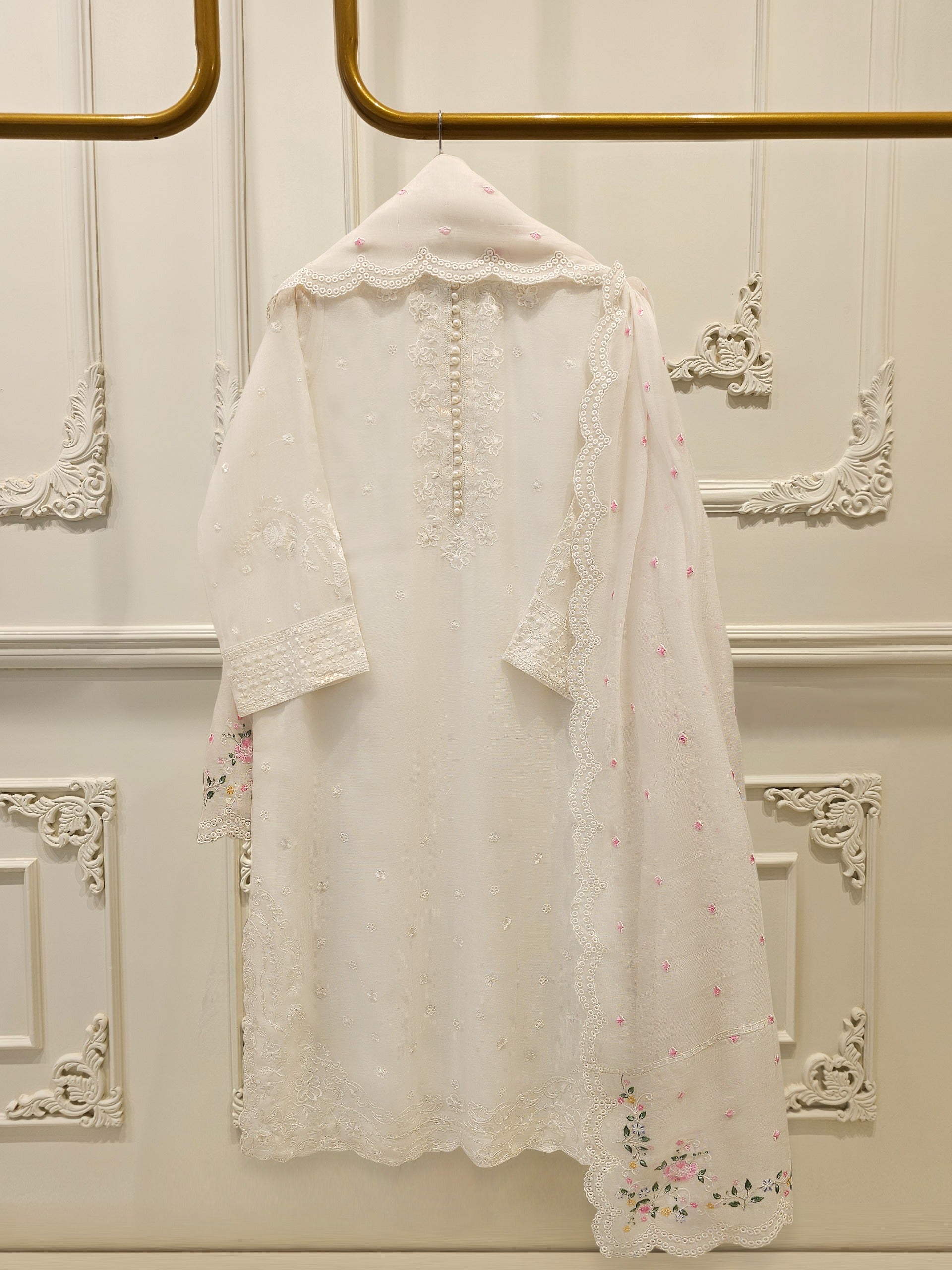 Introducing our elegant embroidered cotton net shirt with pants a perfect choice for those who appreciate intricate detailing and graceful style. Crafted from high-quality cotton net fabric, this shirt offers a lightweight and luxurious feel, allowing you to feel comfortable and chic throughout the day. The set comes with a matching pant which enhances the overall look and adds a touch of finesse to your outfit.