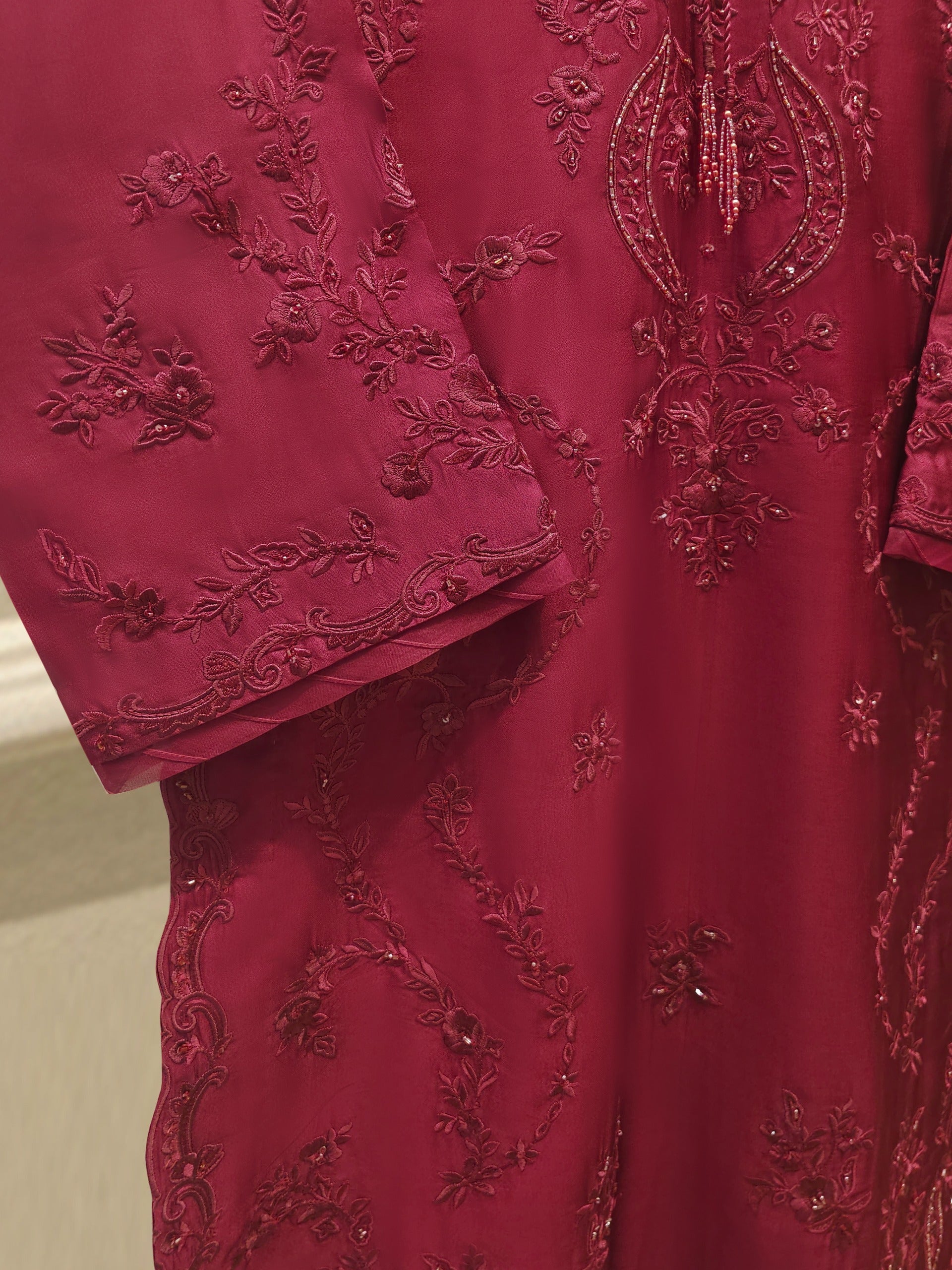 3 Piece- Pure Embroidered Sheesha Silk Suit S112399