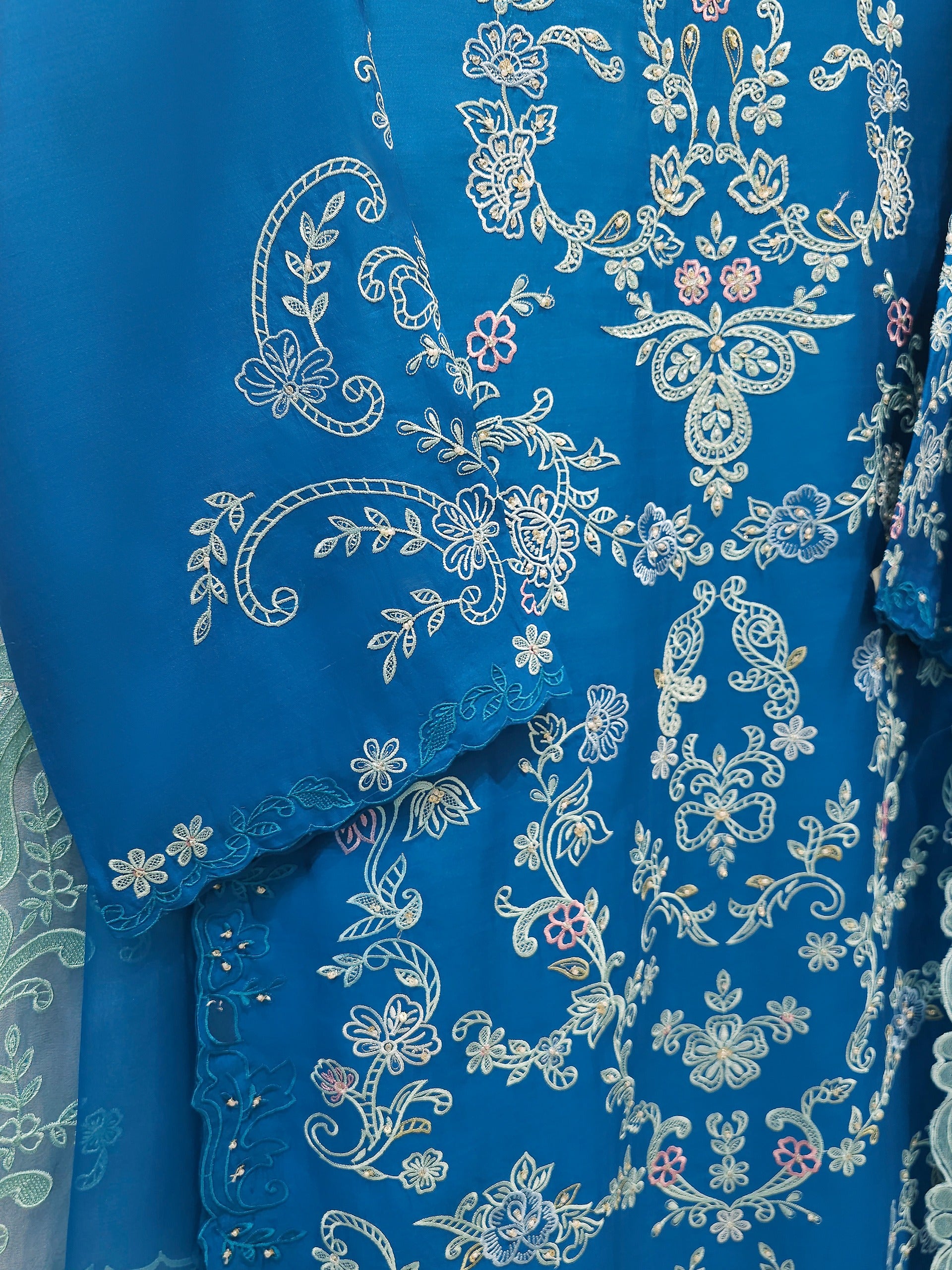 3 Piece- Pure Khaddi Silk Embroidered Suit S112404