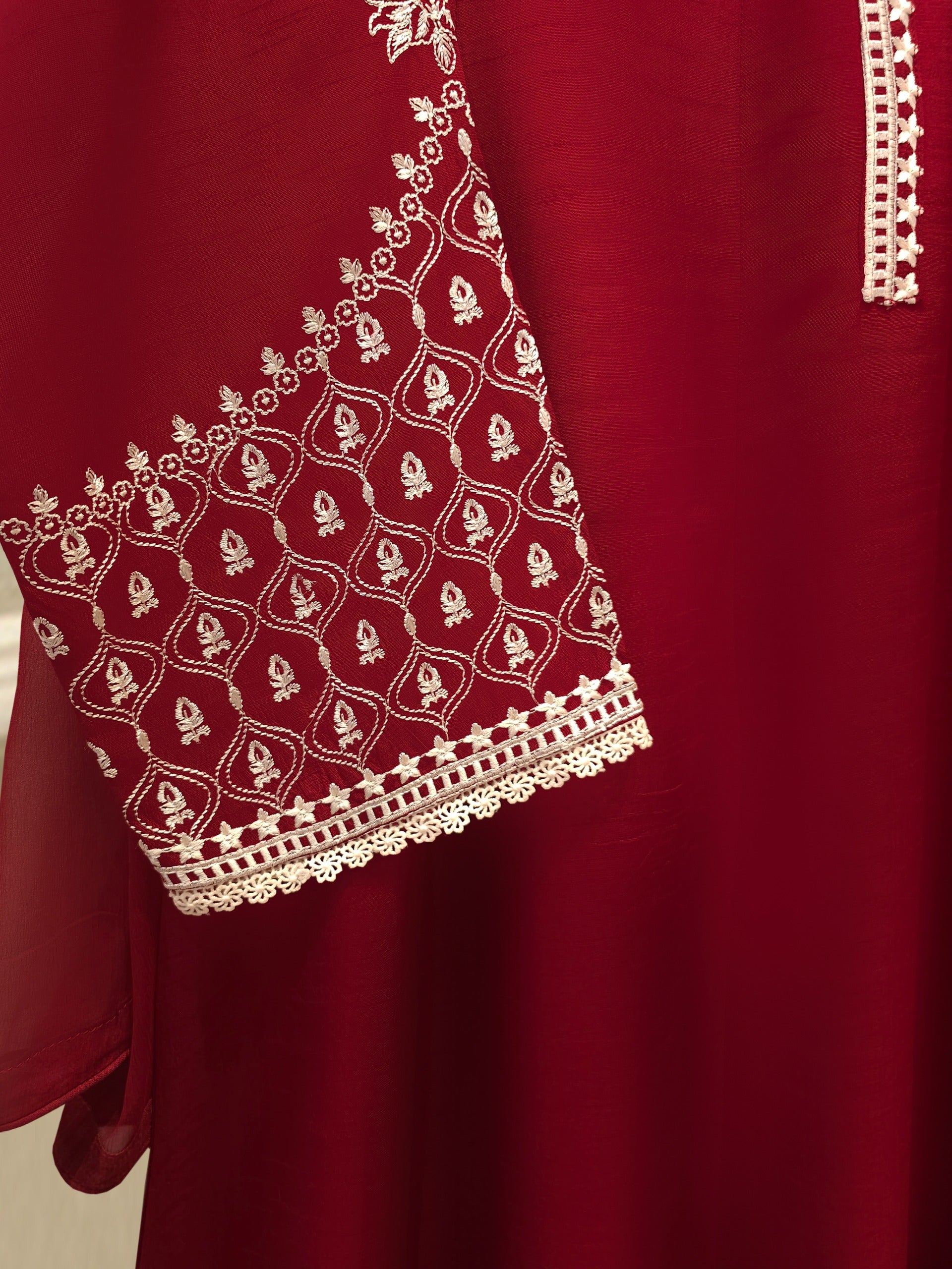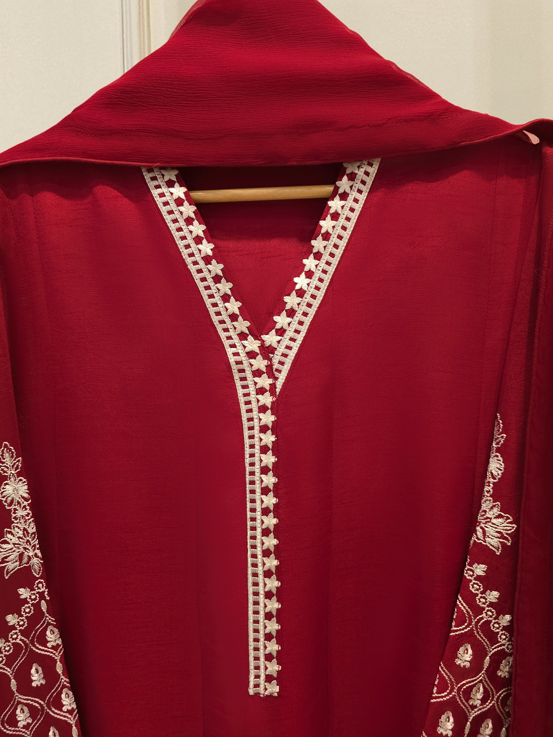 3 Piece- Pure Khadi Silk Embroidered Suit S112346