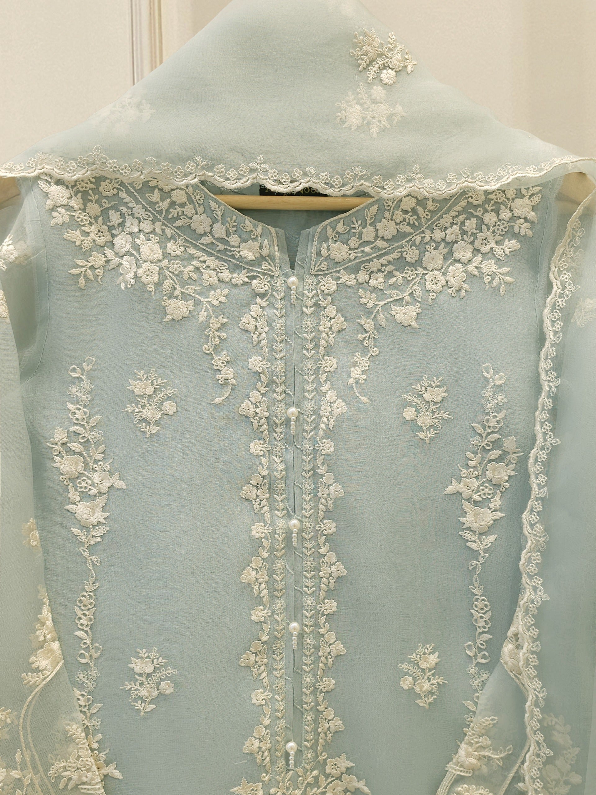 Elevate your style with our pink embroidered organza straight shirt crafted with utmost care and attention to detail. The shirt features intricate embroidery on the front and sleeves, adding a touch of timeless charm.
