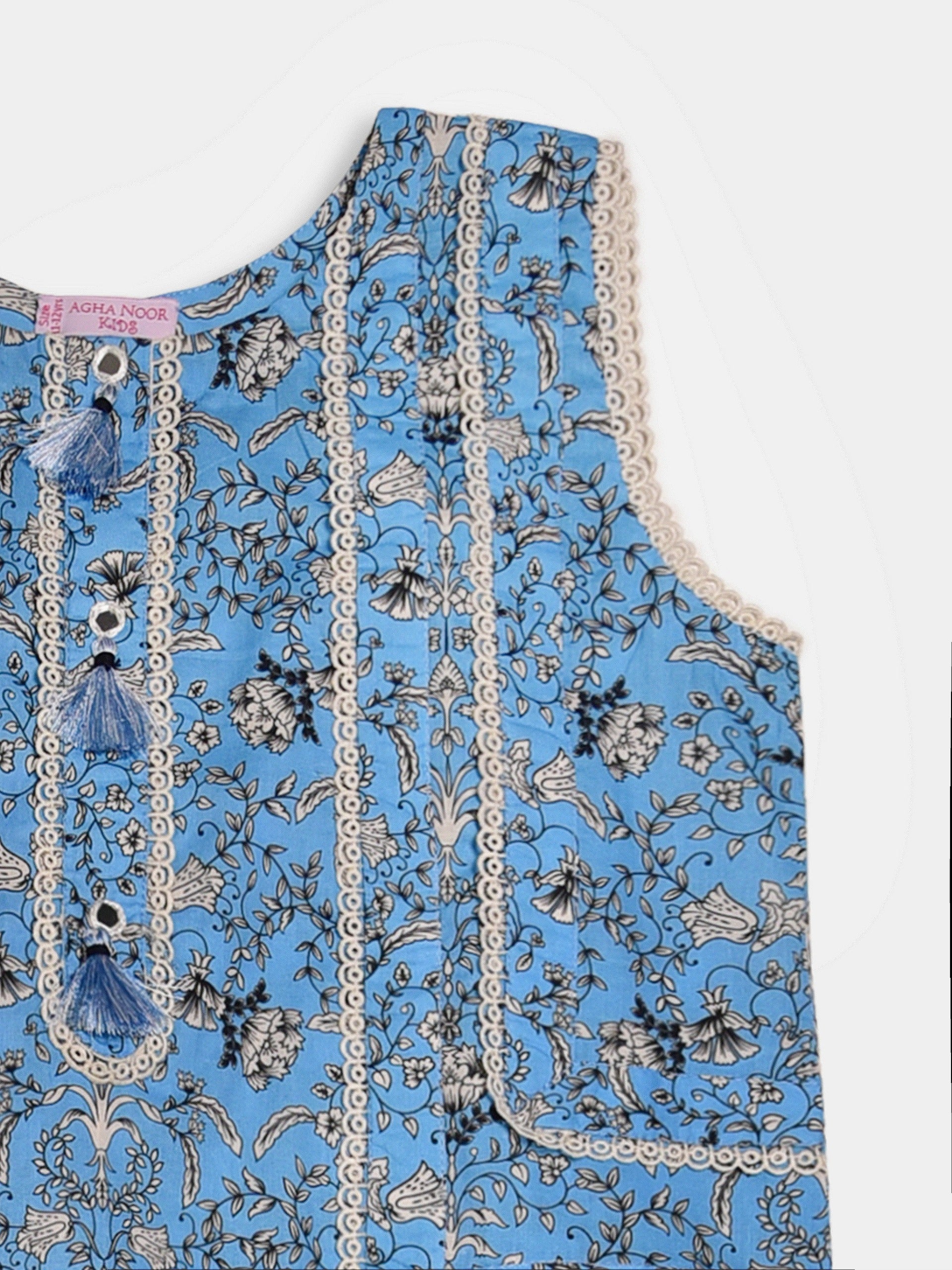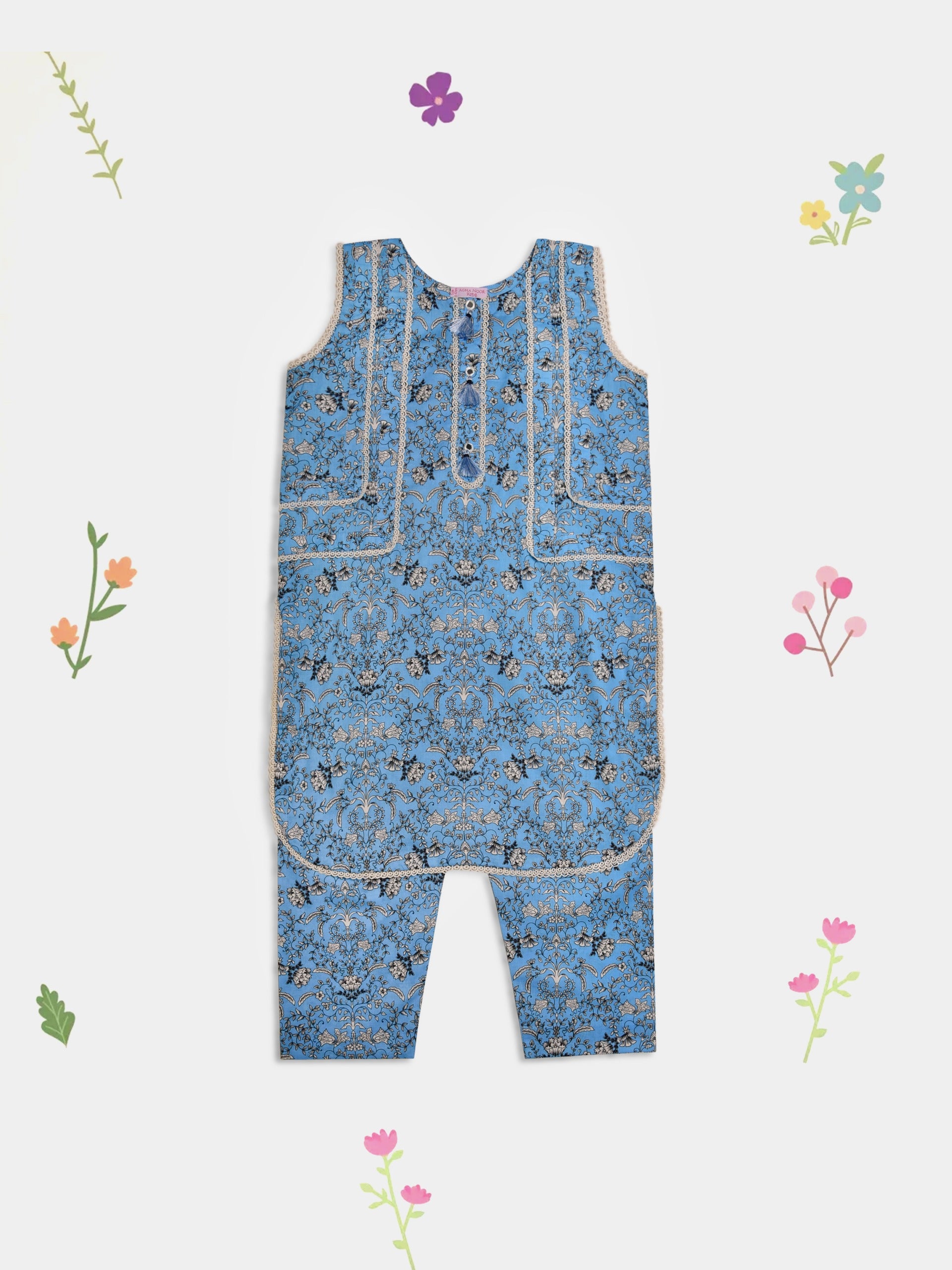 Elevate your little one's style with our blue printed lawn shirt with pant.