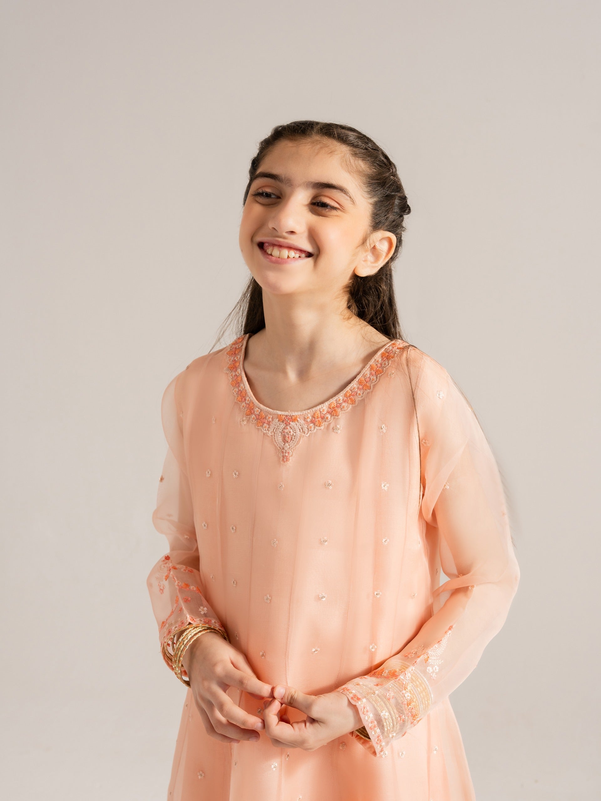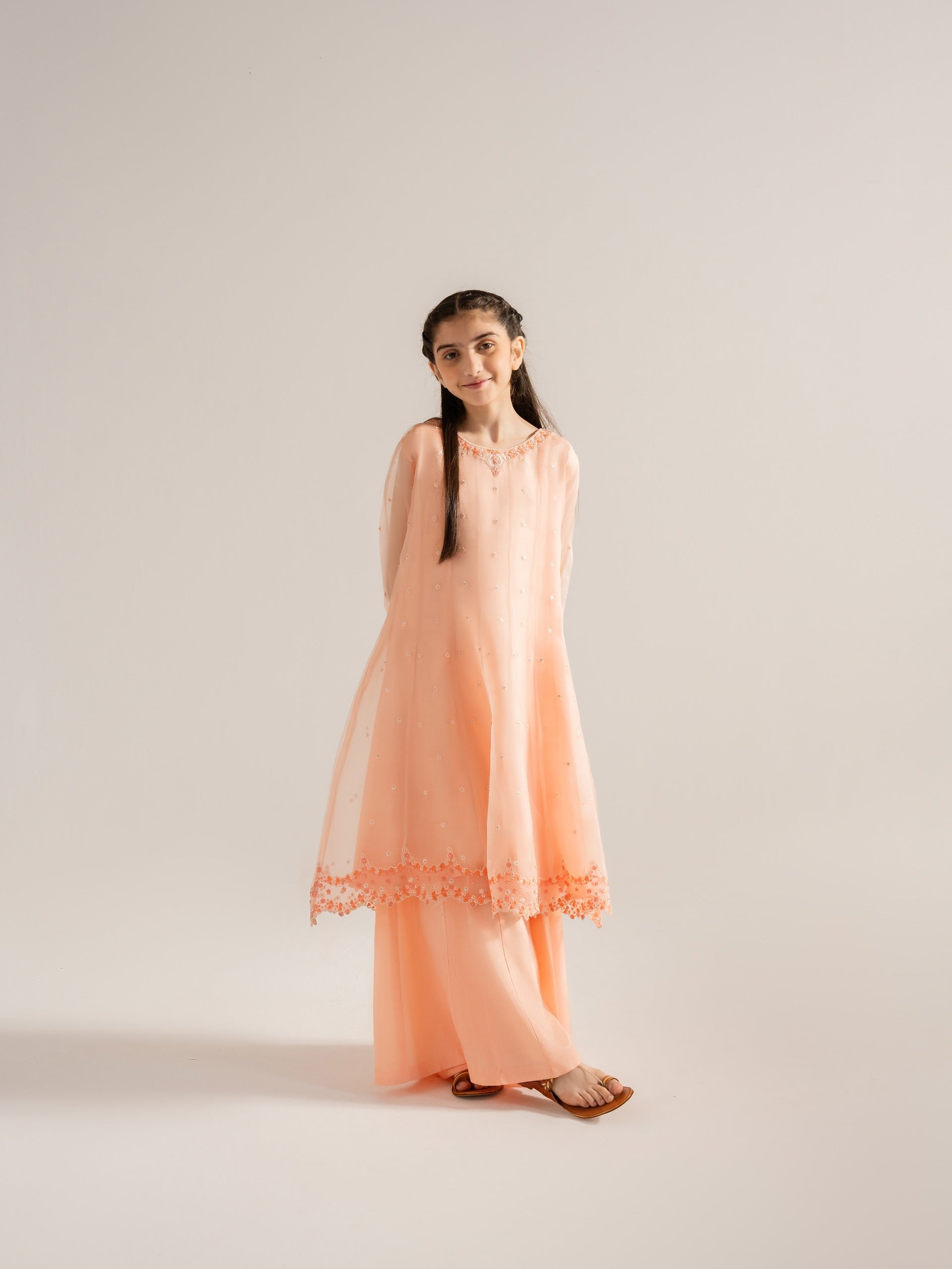 (Kids) 2 Piece - Embroidered Organza Suit KD-006