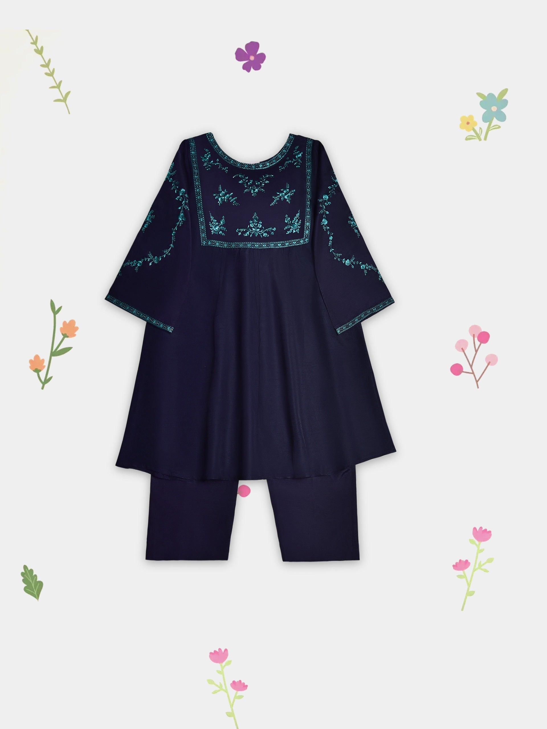 Elevate your little one's style with our embroidered korean silk shirt with pant.